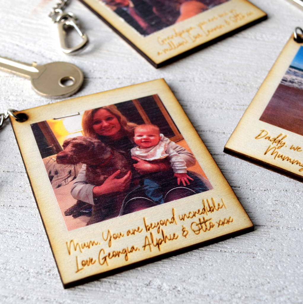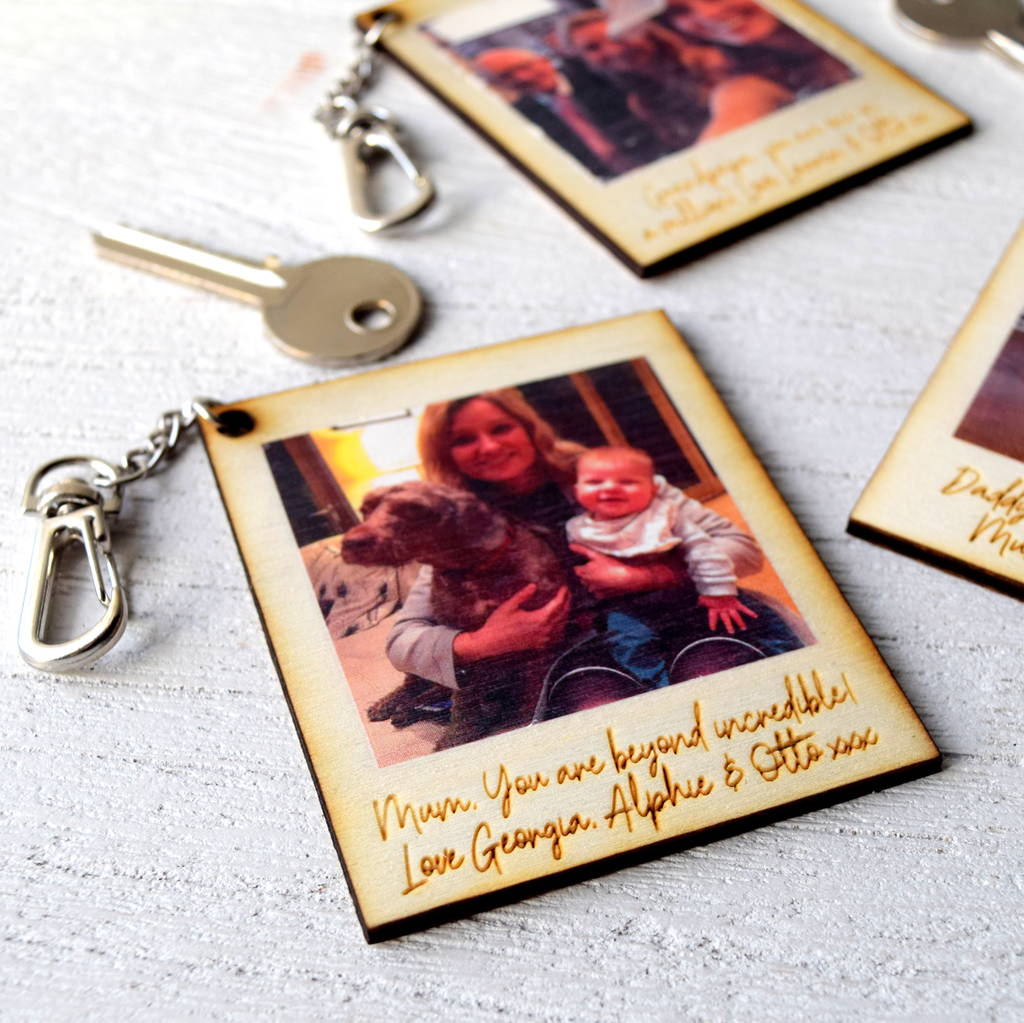 This personalised mother's day key ring will soon become a favourite place for her to keep her car keys or house keys and the photo will remind her of a special place or her special people everyday!