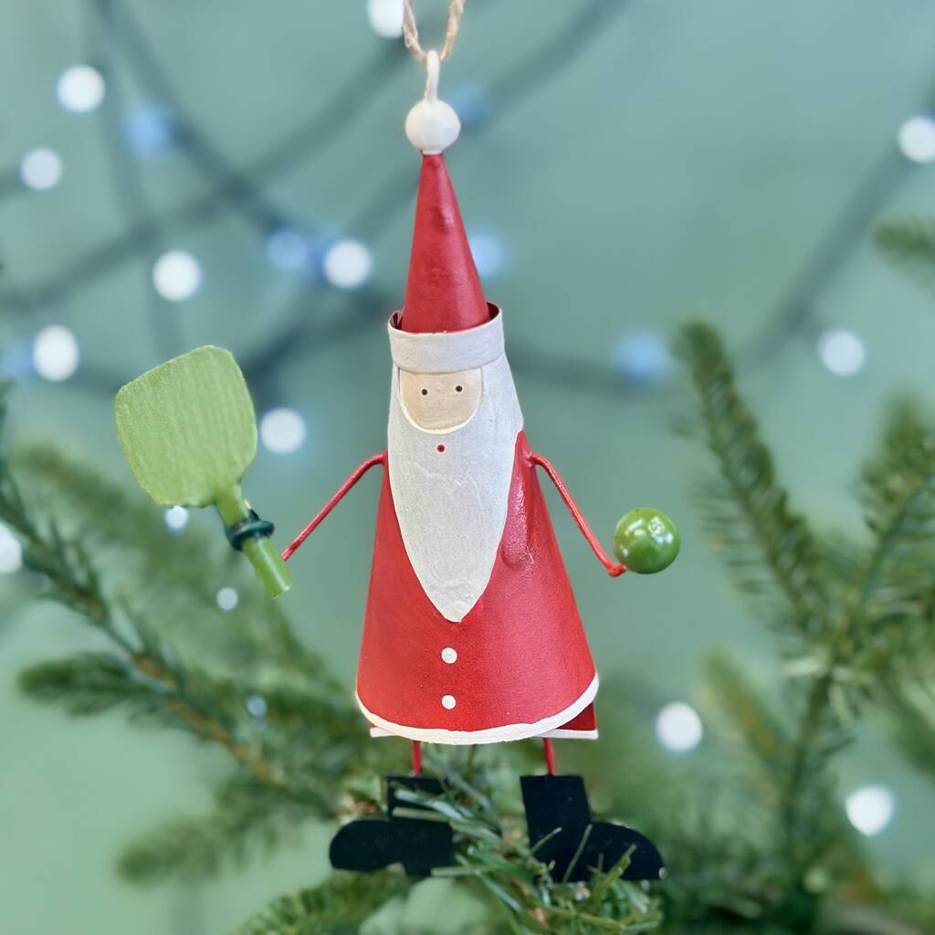 Personalised Padel Ball or Pickleball Santa Christmas bauble with engraved tag. Perfect gift for players, sports fans, or as a fun Secret Santa keepsake.
