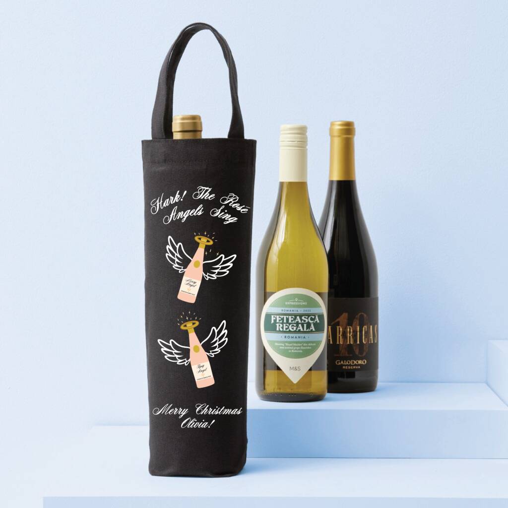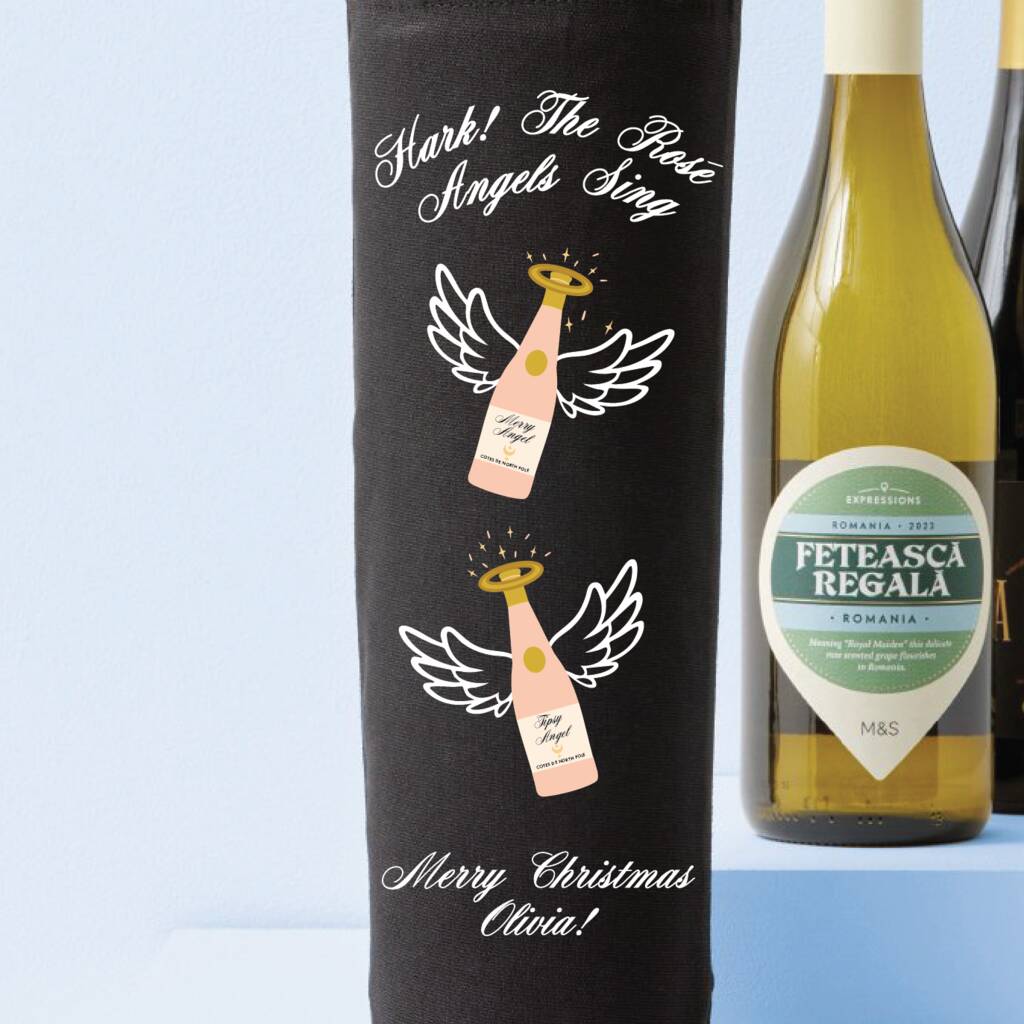 At the top of the bag, the festive wording “Hark! The Rosé Angels Sing” adds a joyful statement, while the base of the bag can be personalised with the name or message of your choice, such as “Merry Christmas Olivia!”, creating a thoughtful, unique, and memorable gift.