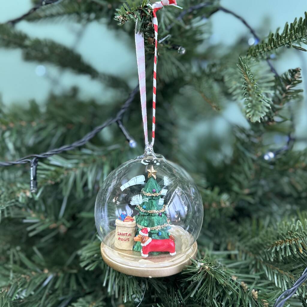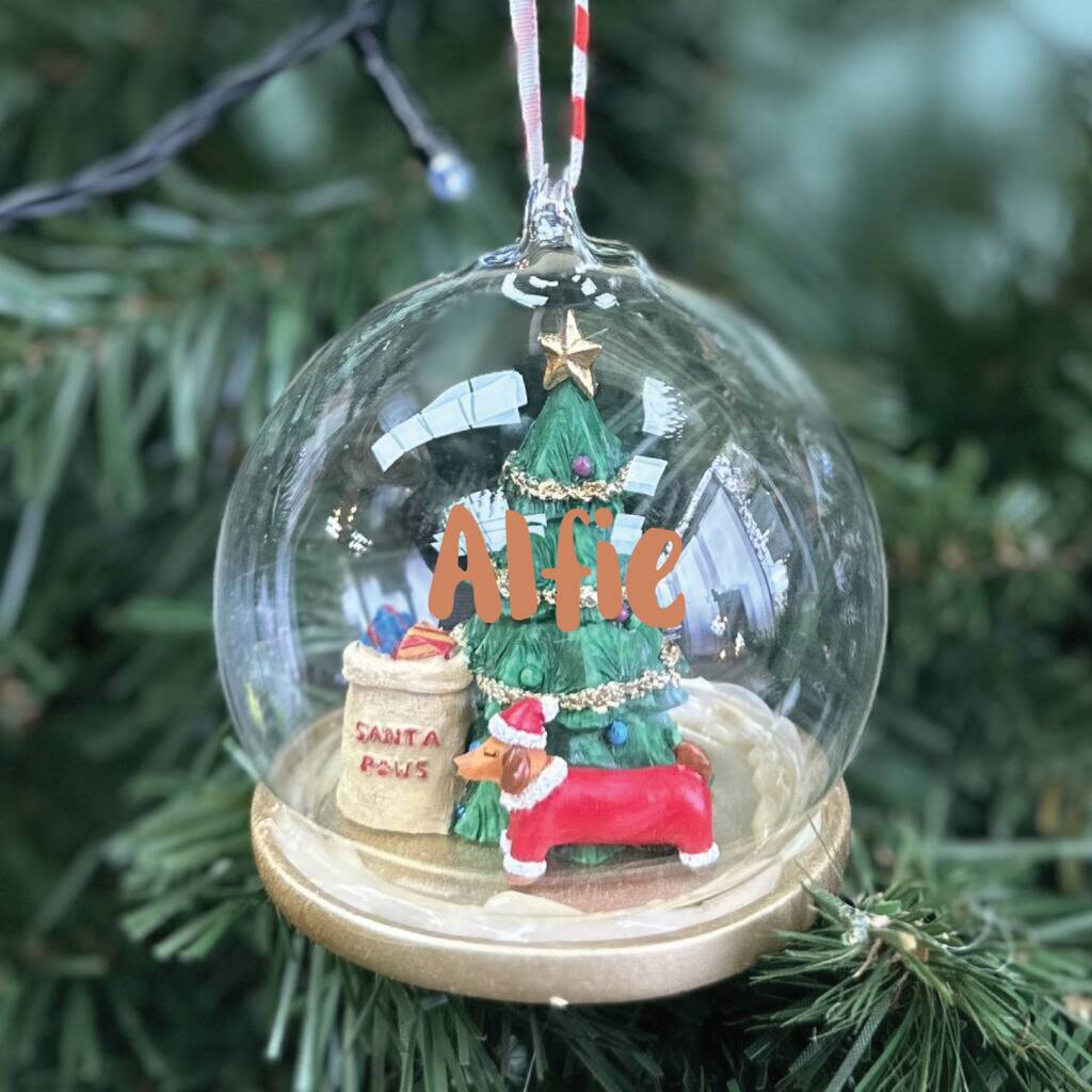 The glass dome can be personalised with the name of your choice, printed in elegant copper lettering across the front. Whether you add your dog’s name or a short festive message, it creates a truly personal keepsake to hang proudly on your Christmas tree year after year.