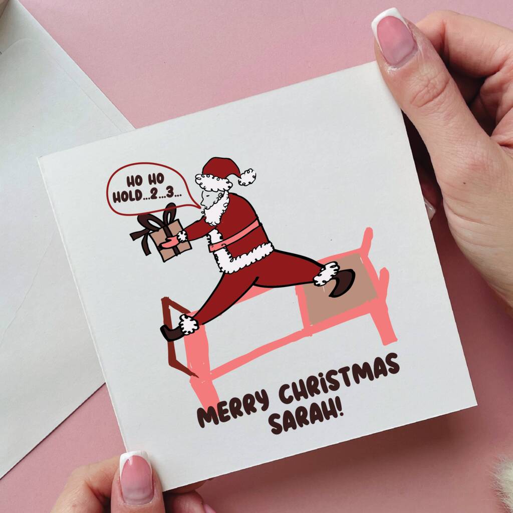 Personalised Santa Reformer Pilates Ho Ho Hold Christmas Card
