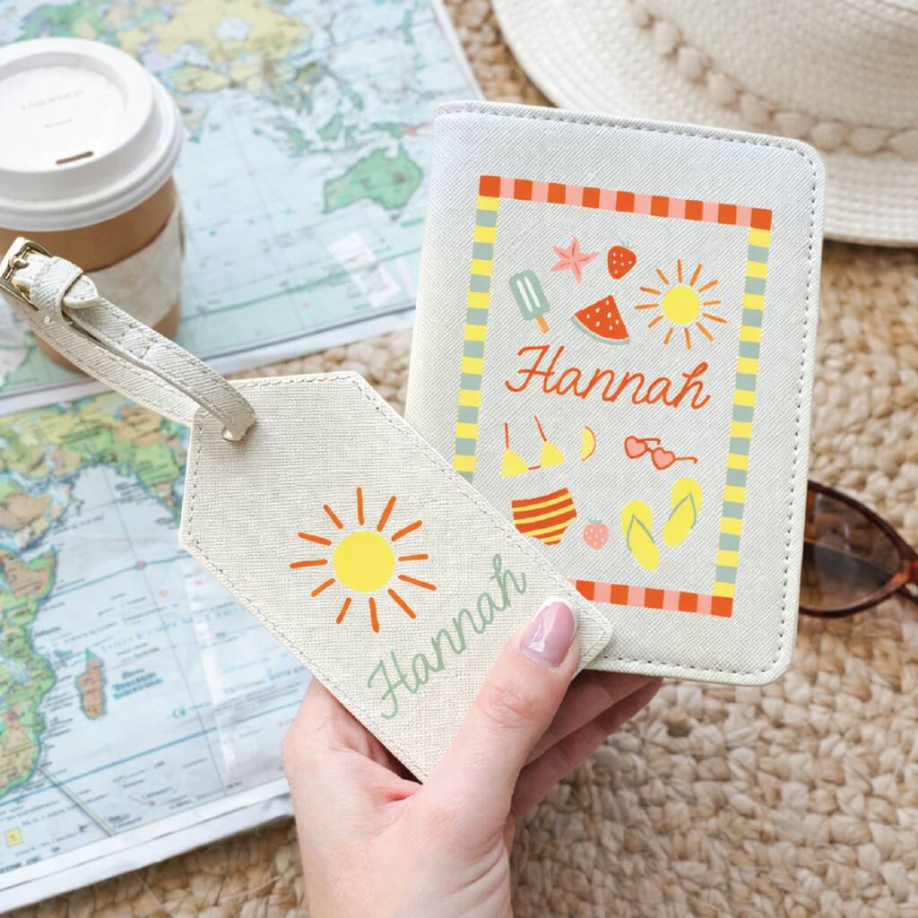 Personalised Summer Drawings Passport Cover And Luggage Tag