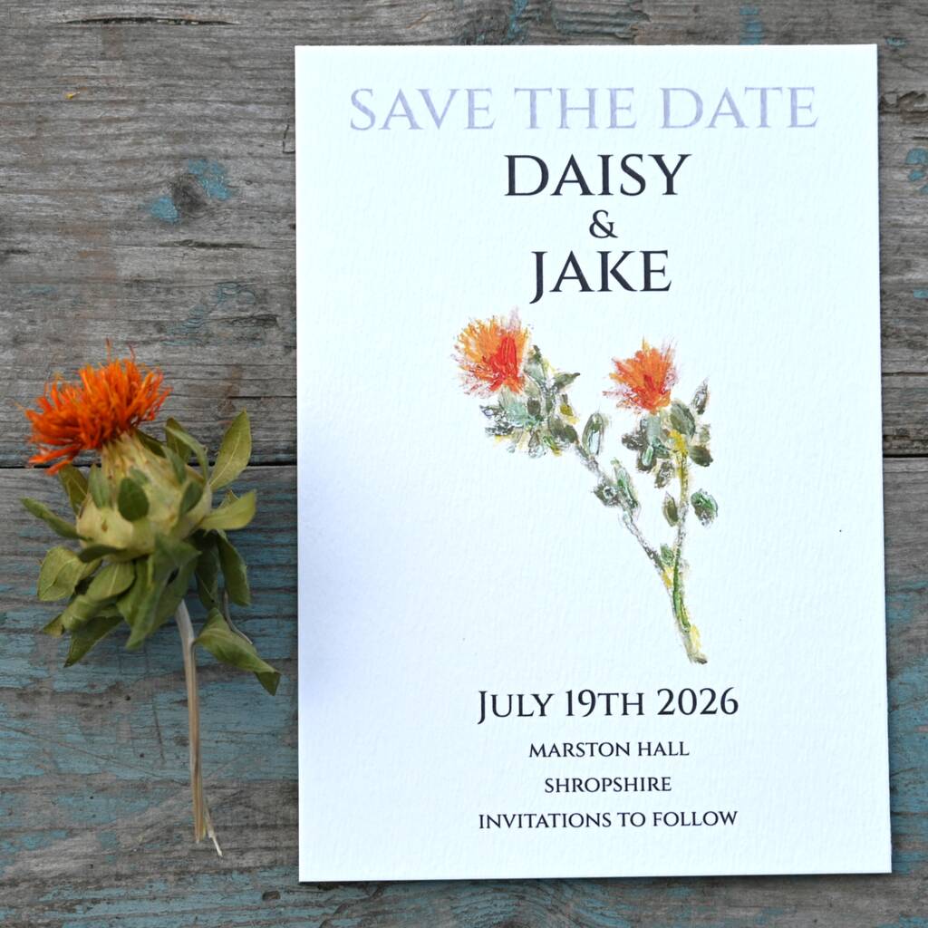 Pack 12 Carthamus Original Personalised Save The Date Wedding Stationery