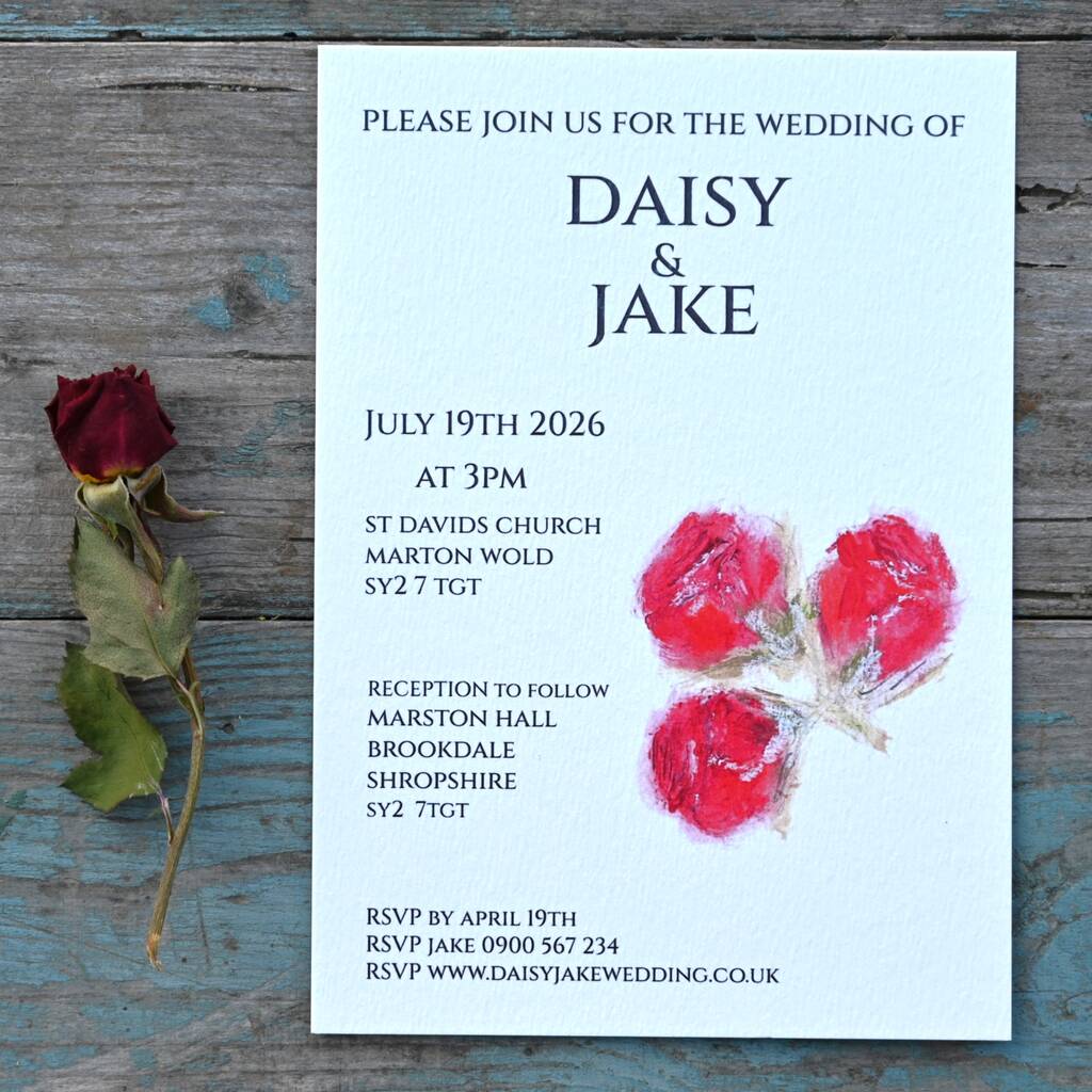 Pack 12 Red Rose Original Personalised Wedding Invitations