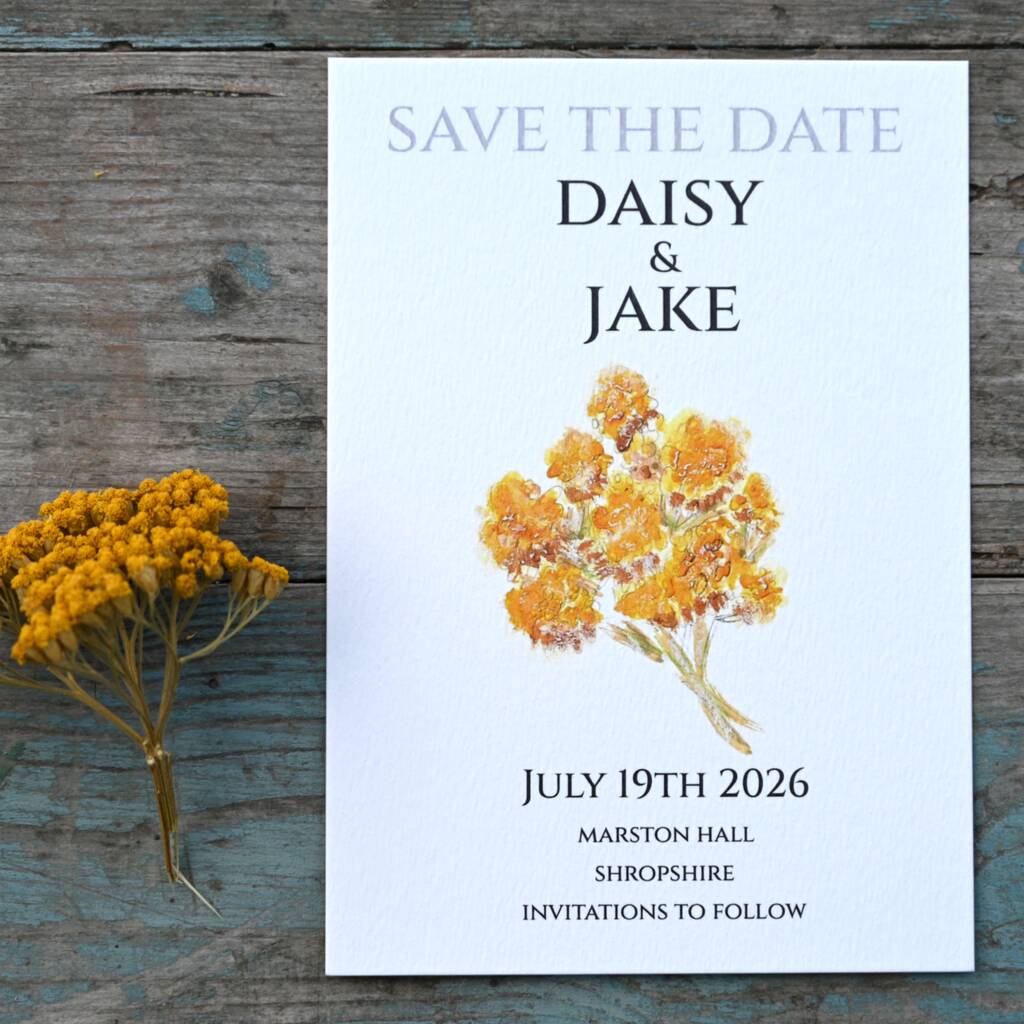 Pack 12 Yarrow Original Personalised Save The Date Wedding Stationery