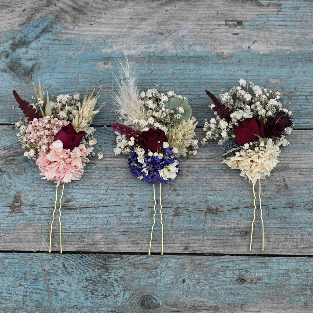 Set Of Three Wedding Dried Flower Hair Pins Meadow Reds