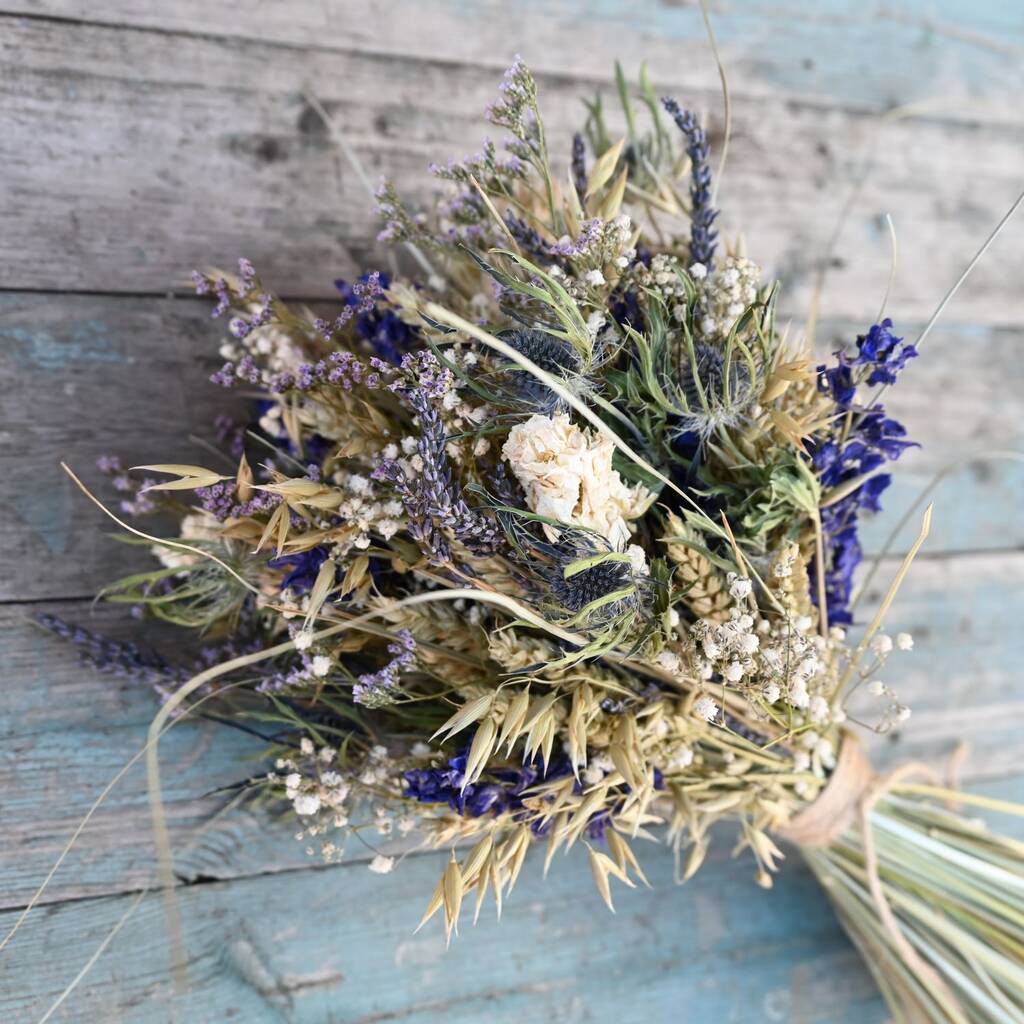 Wedding Dried Flower Bouquet Meadow Blues Right