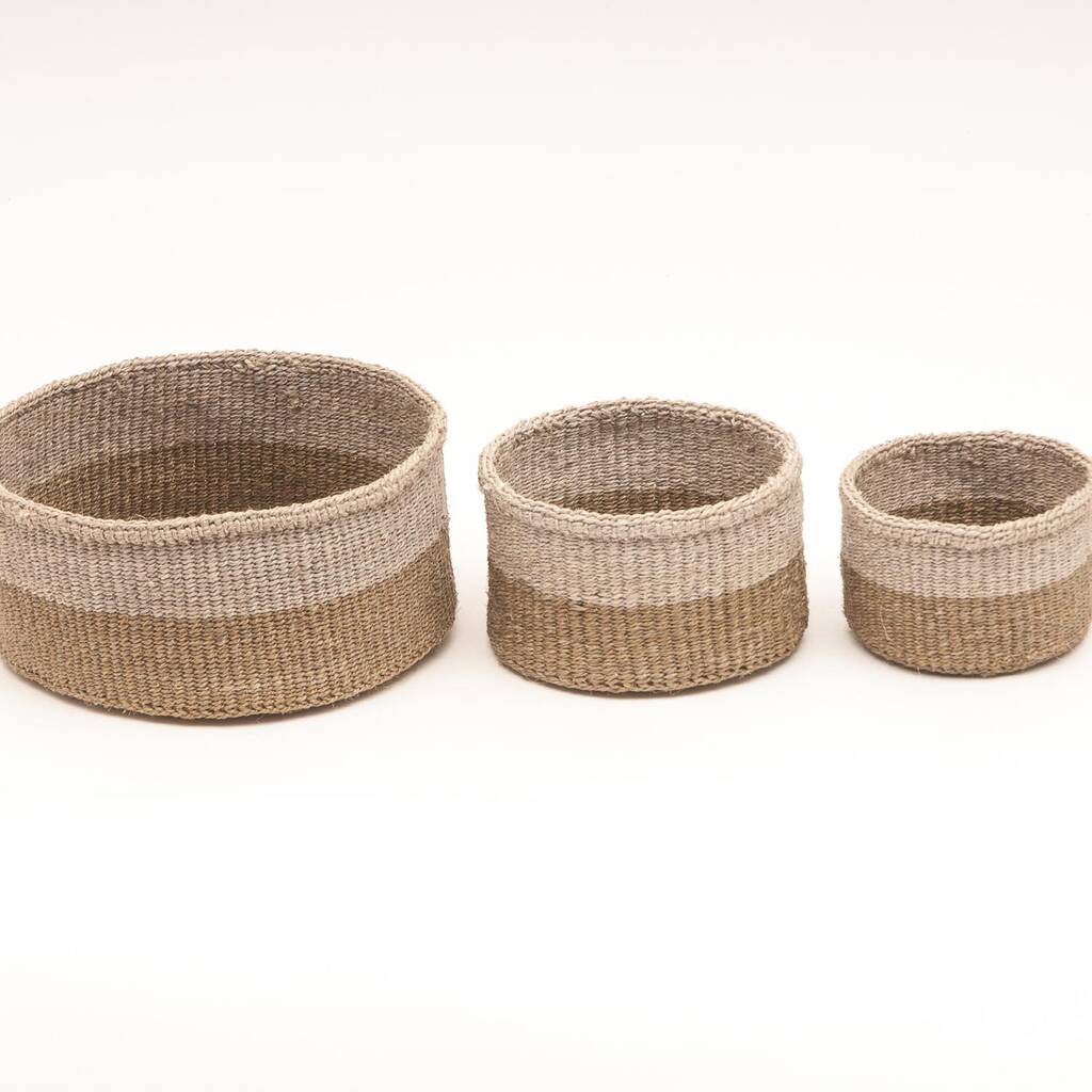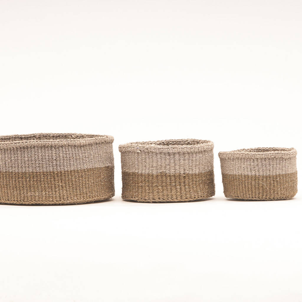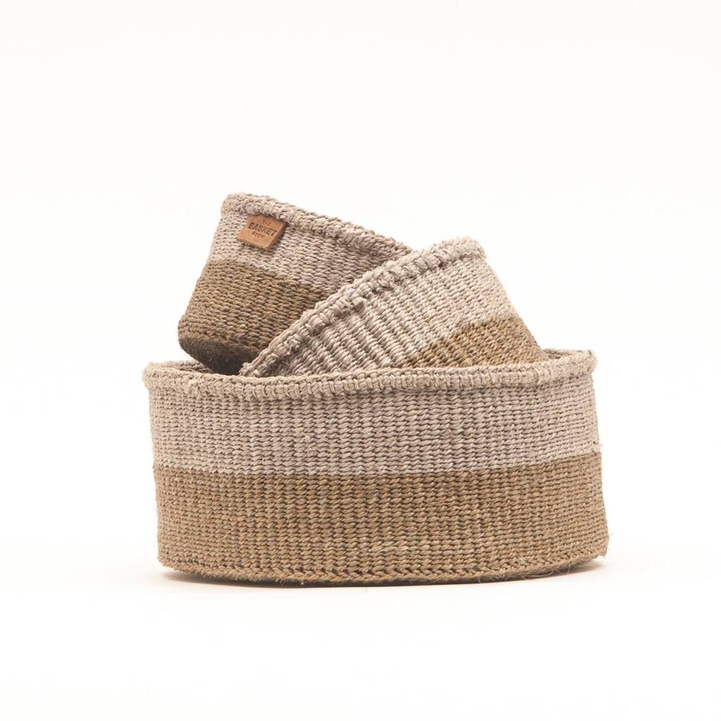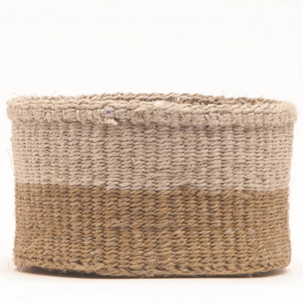 Chali: Charcoal And Sand Duo Colour Block Woven Basket