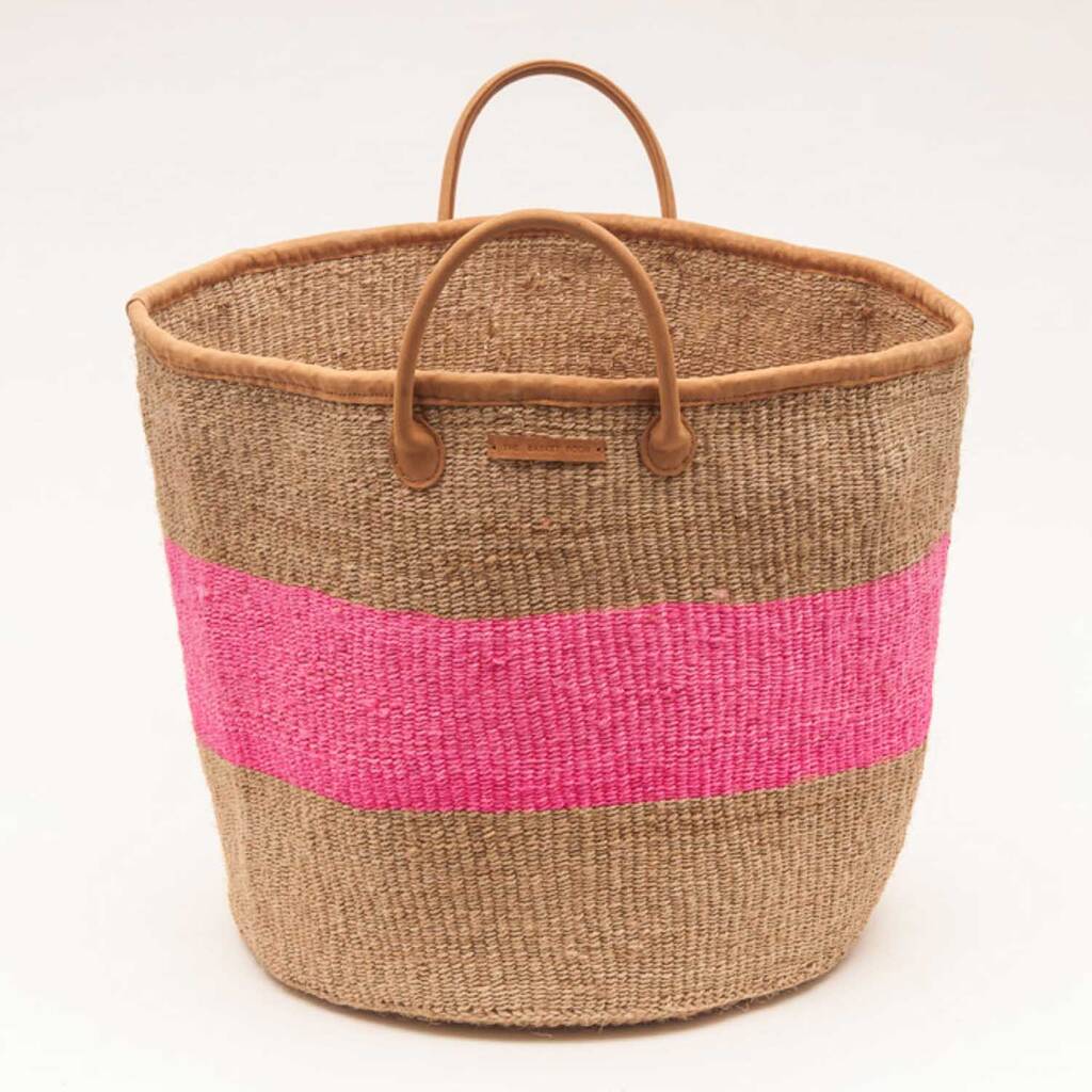 Kitambaa: Natural And Pink Stripe Woven Laundry Basket