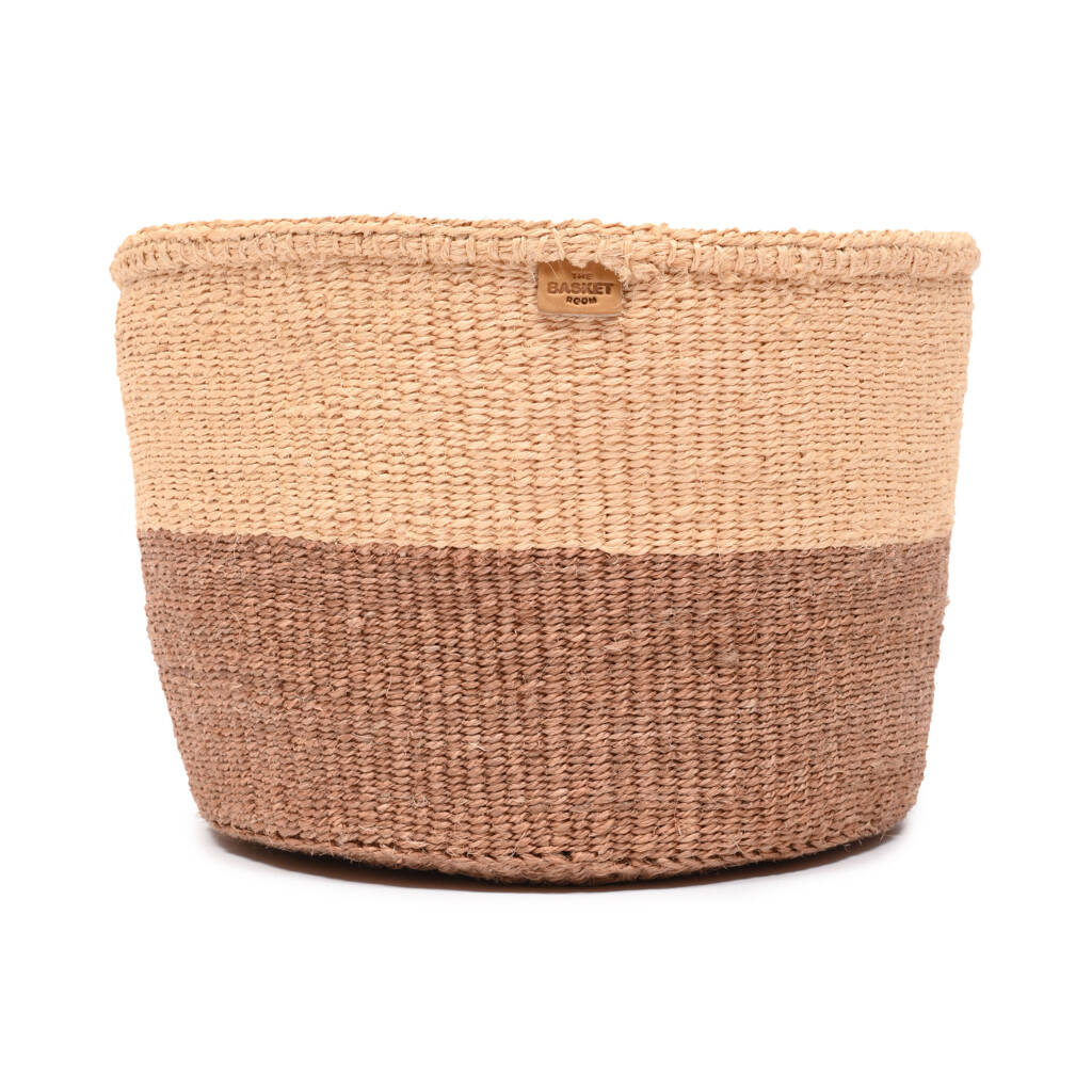 Taifa: Brown And Sand Duo Colour Block Woven Basket