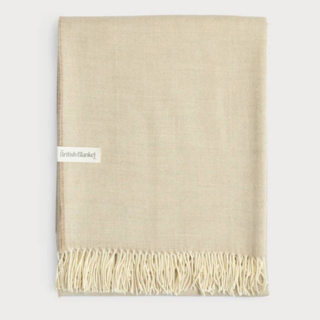 - 100% Merino Lamsbwool Beige Blanket 145cm x 195cm