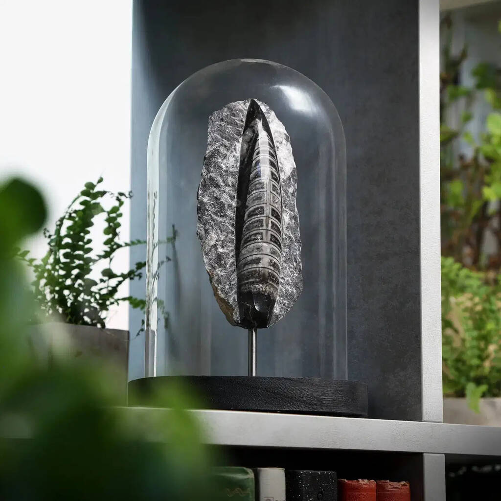 Orthocera In Matrix Authentic Fossil Glass Dome Bell Jar Tabletop Home Decoration