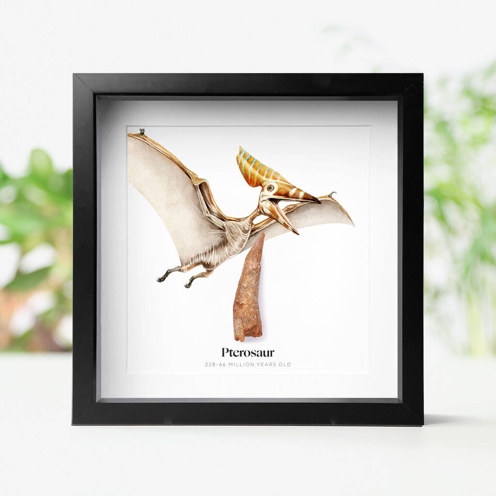 Xl Pterosaur Tooth Dinosaur Fossil W/ Watercolour Frame