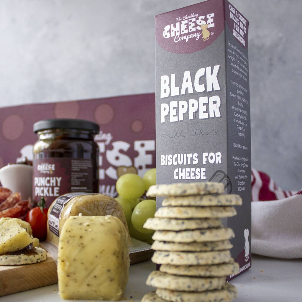 Chuckling Pepper & Poppy Seed Biscuits: WHEAT flour (WHEAT flour, calcium carbonate, iron, niacin, thiamin), vegetable oil (palm oil), OATMEAL (16%), water, poppy seeds (8%), sugar, salt, black pepper, raising agents: disodium diphosphate, sodium bicarbonate. Not suitable for NUT and SESAME allergy suffers: may also contain traces of EGG, MUSTARD, PEANUT, SOYA and other gluten sources (SPELT, RYE, BARLEY).