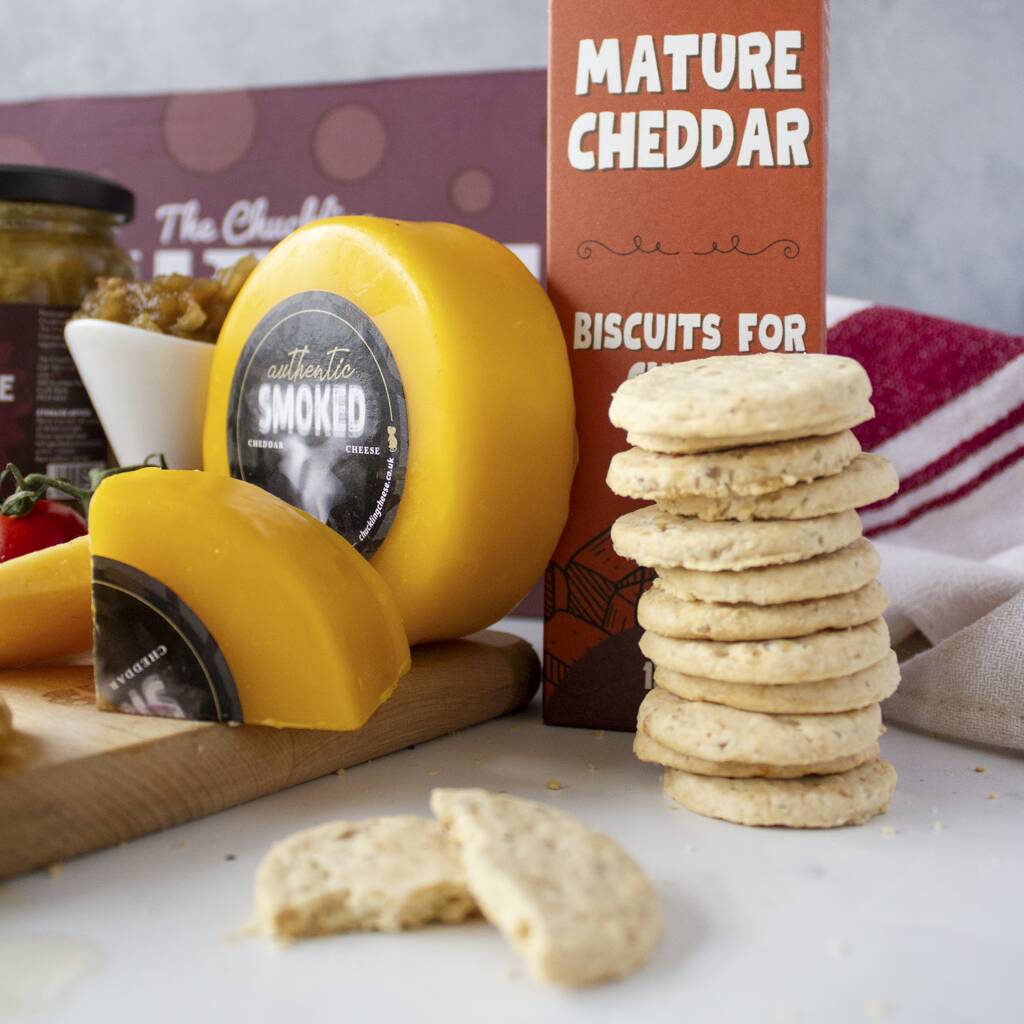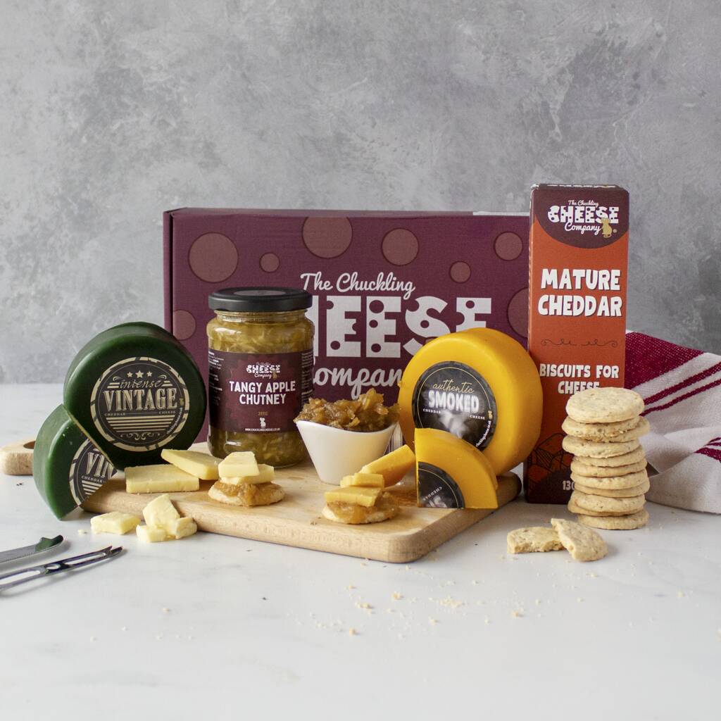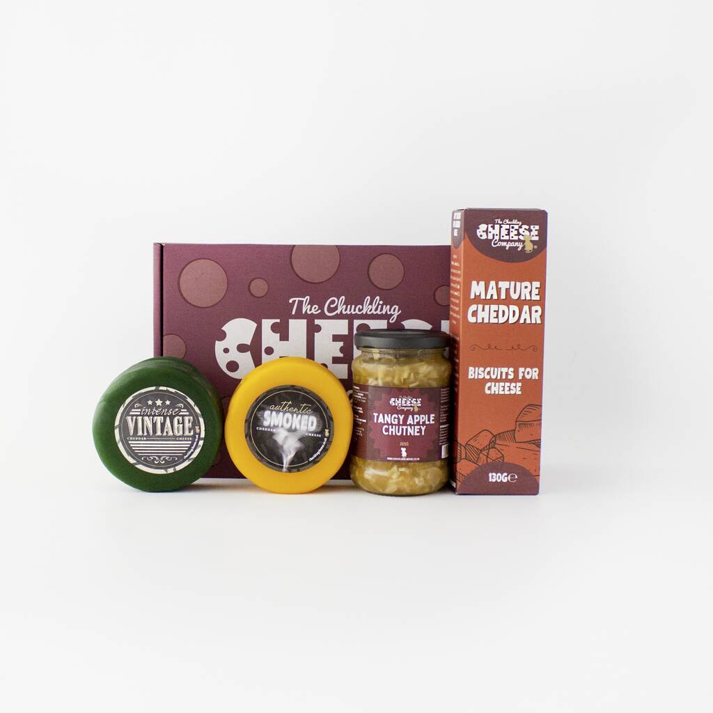Our traditional selection box would make a great gift for the cheese-lovers that you know. Two truckles paired with a chutney and crackers.
