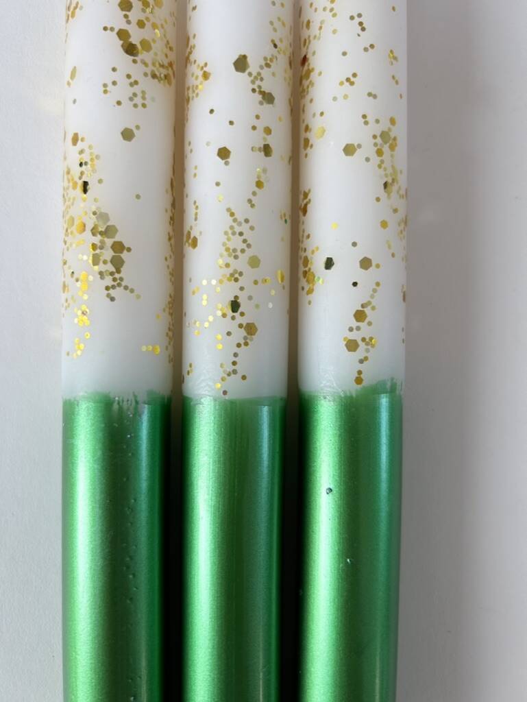 Ivory And Green Glitter Christmas Candles 'Mistletoe Kisses'