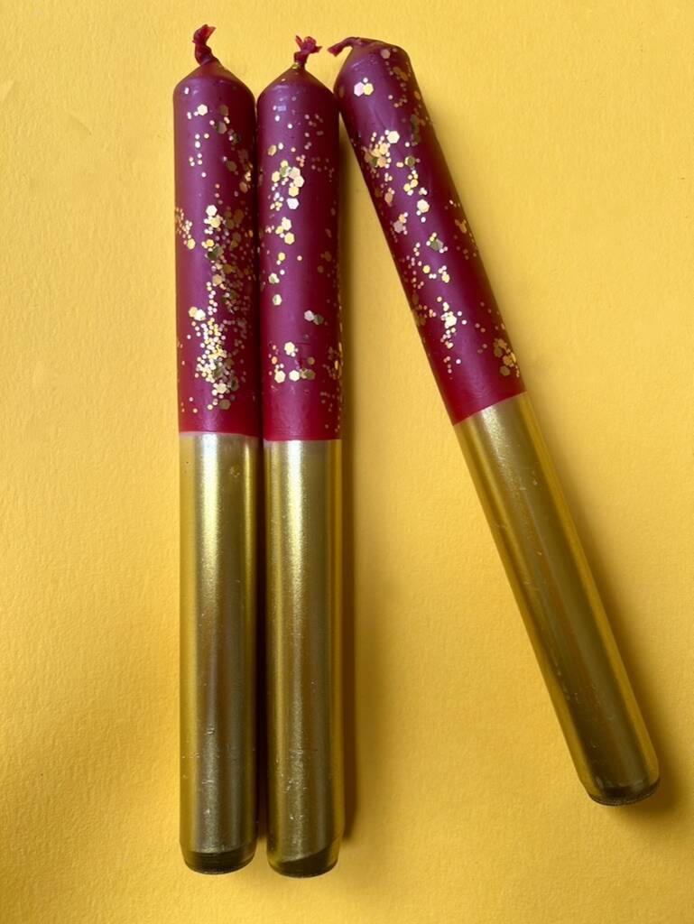 Red And Gold Glitter Christmas Candles 'Plum Puddings'