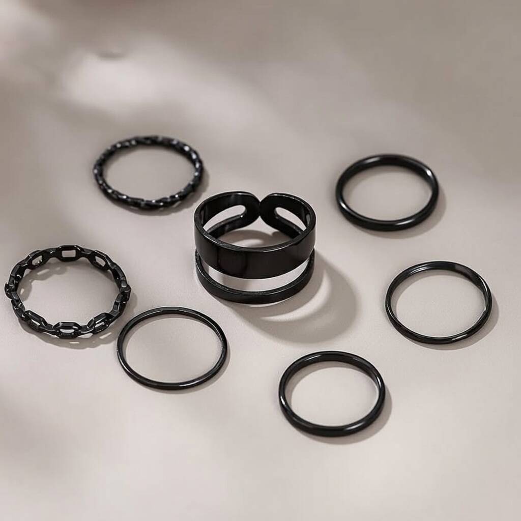 Seven Piece Multi Size Stackable Band Cuff Rings