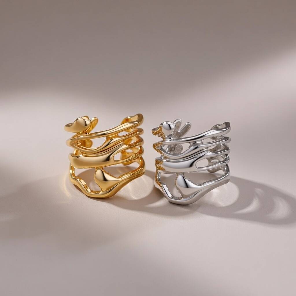 Abstract Fluid Wrap Wide Adjustable Band Gold Or Silver Ring