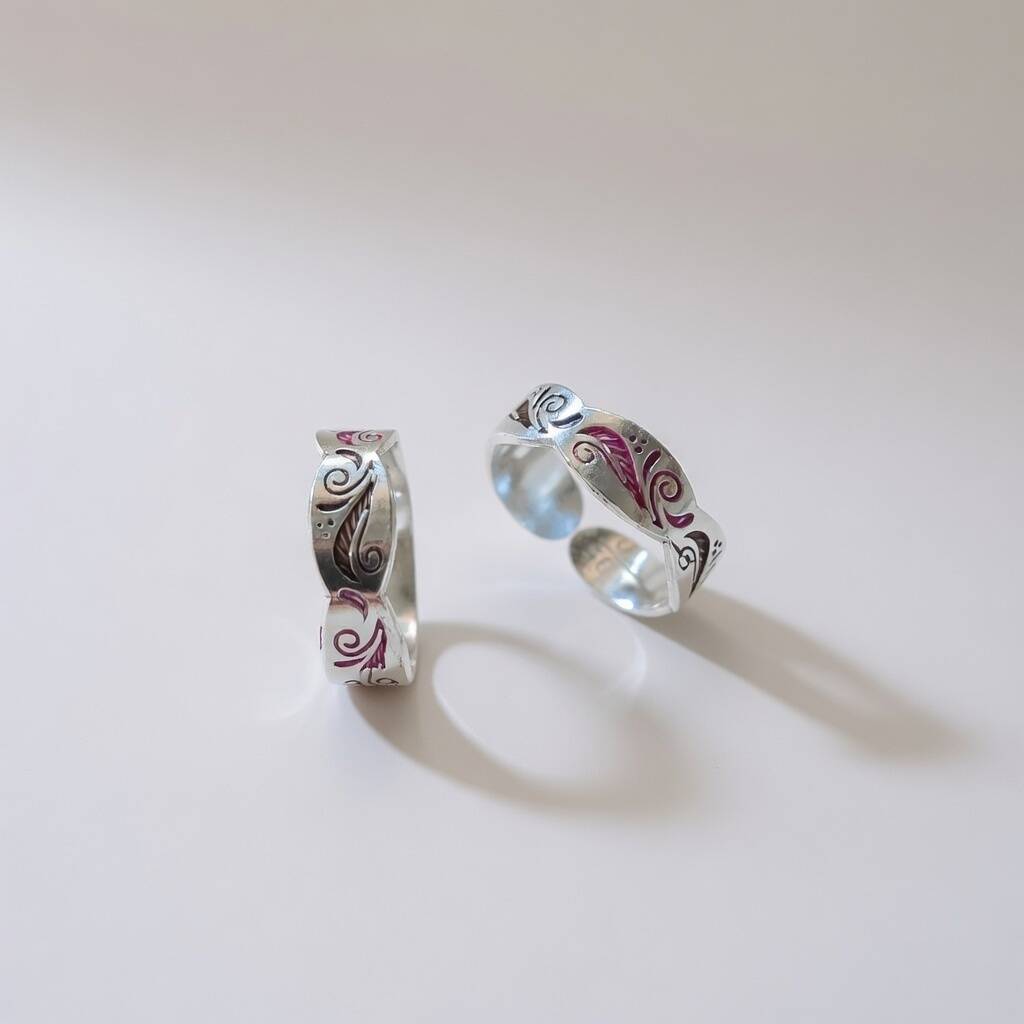Adjustable Pure Silver Colourful Band Bohemian Toe Ring