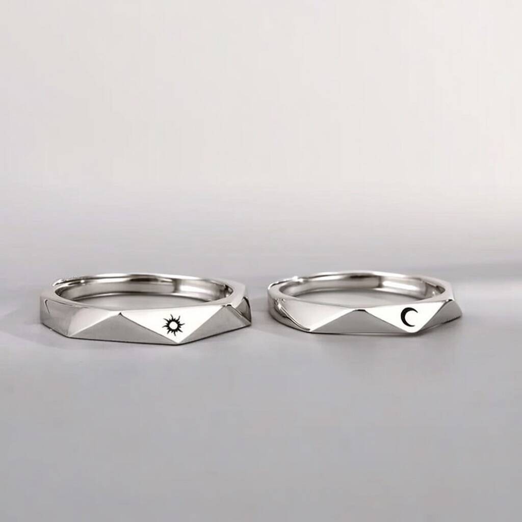 Angle Cut Adjustable Couple Moon And Sun Promise Rings