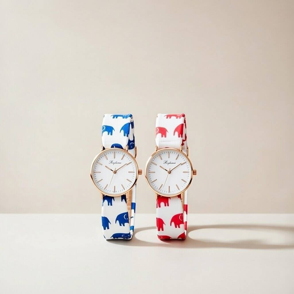 Blue Elephant Changeable Women Cotton Strap Wrist Watch