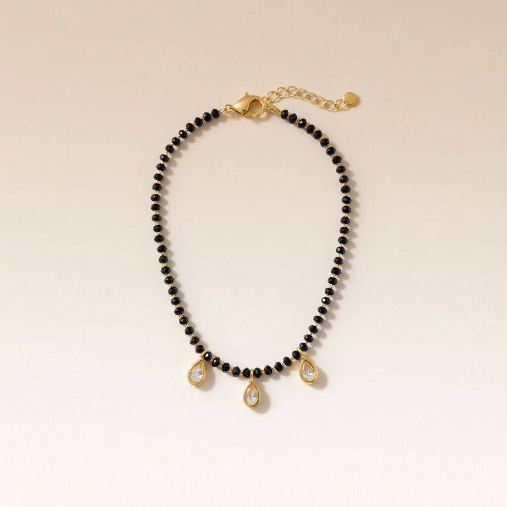 Elegant Black Beaded Nazar Mangalsutra Dangle Zircon Bracelet