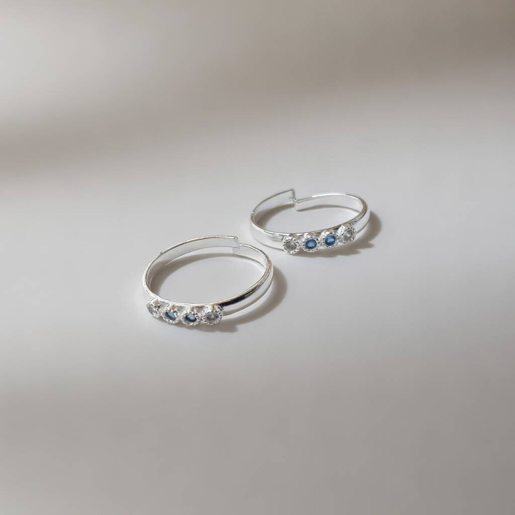 Pure Silver Blue Stone Bichiya Slim Toe Ring