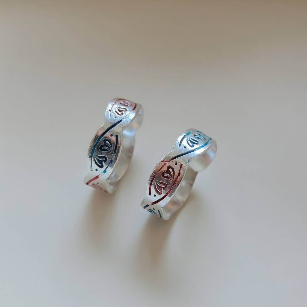 Silver Colourful Dna Muslim Band Adjustable Toe Ring