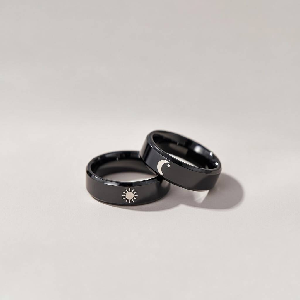 Stainless Steel Couple Black Moon And Sun Promise Ring