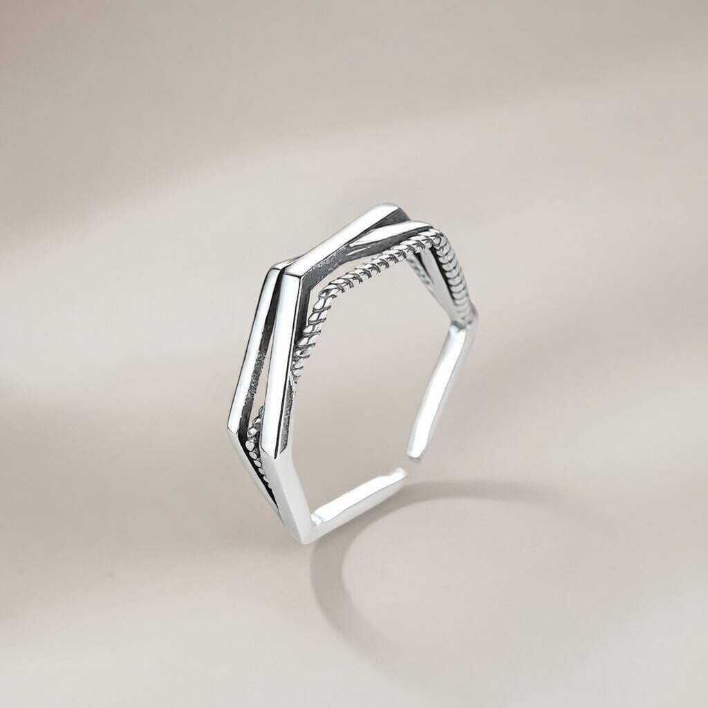 Sterling Silver Geometric Hexagon Angle Cut Slim Ring