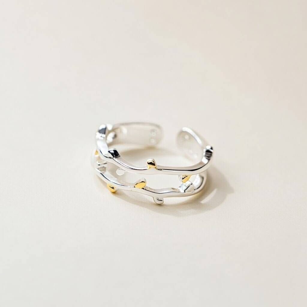 Sterling Silver Tree Leaf Slim Cuff Band Vine Ring