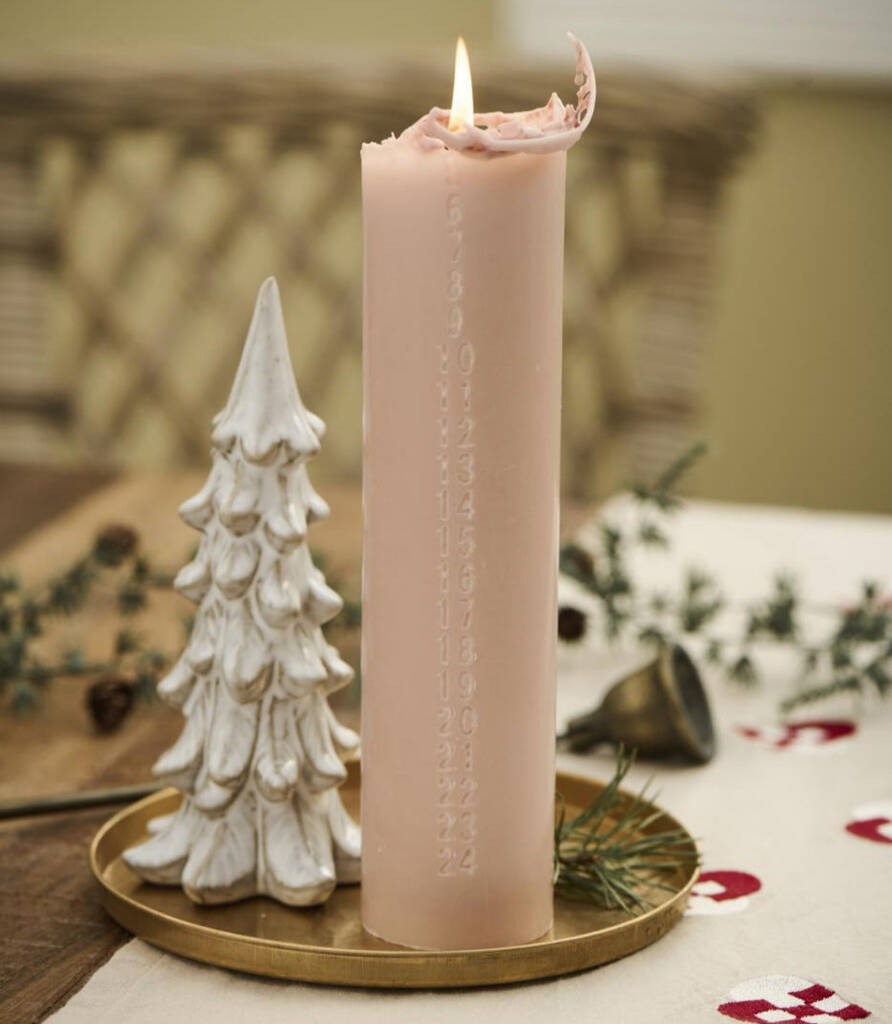 24 Days Christmas Countdown Pillar Candle Rose Pink
