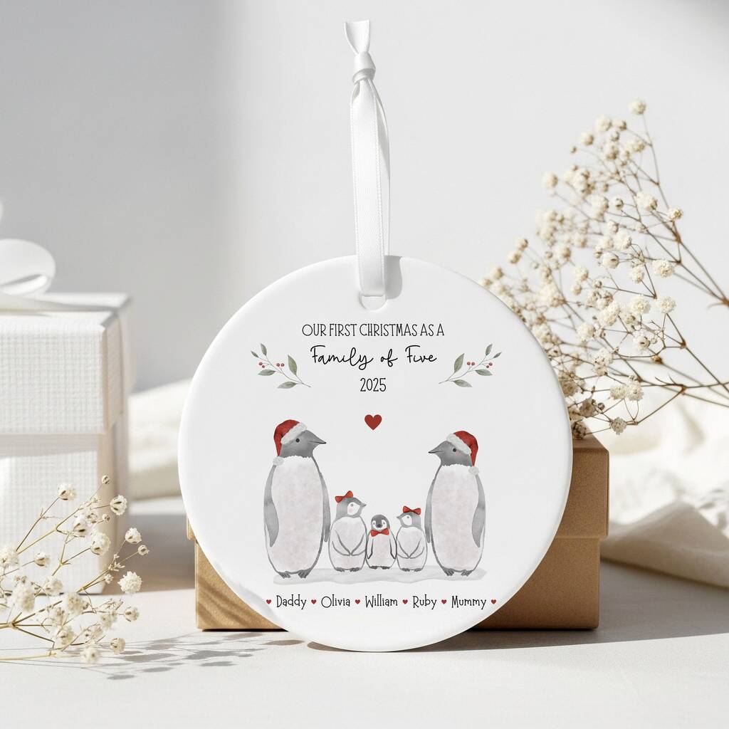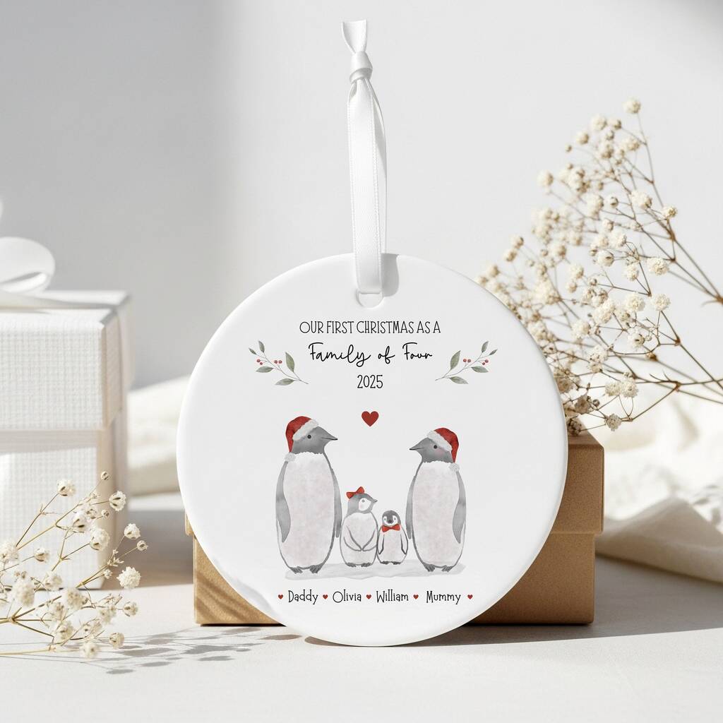 Personalised Family Christmas Penguin Bauble