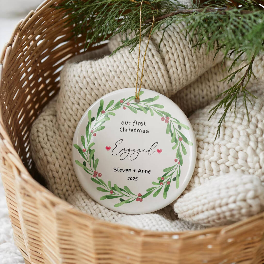 Personalised Our First Christmas Engaged Ceramic Bauble