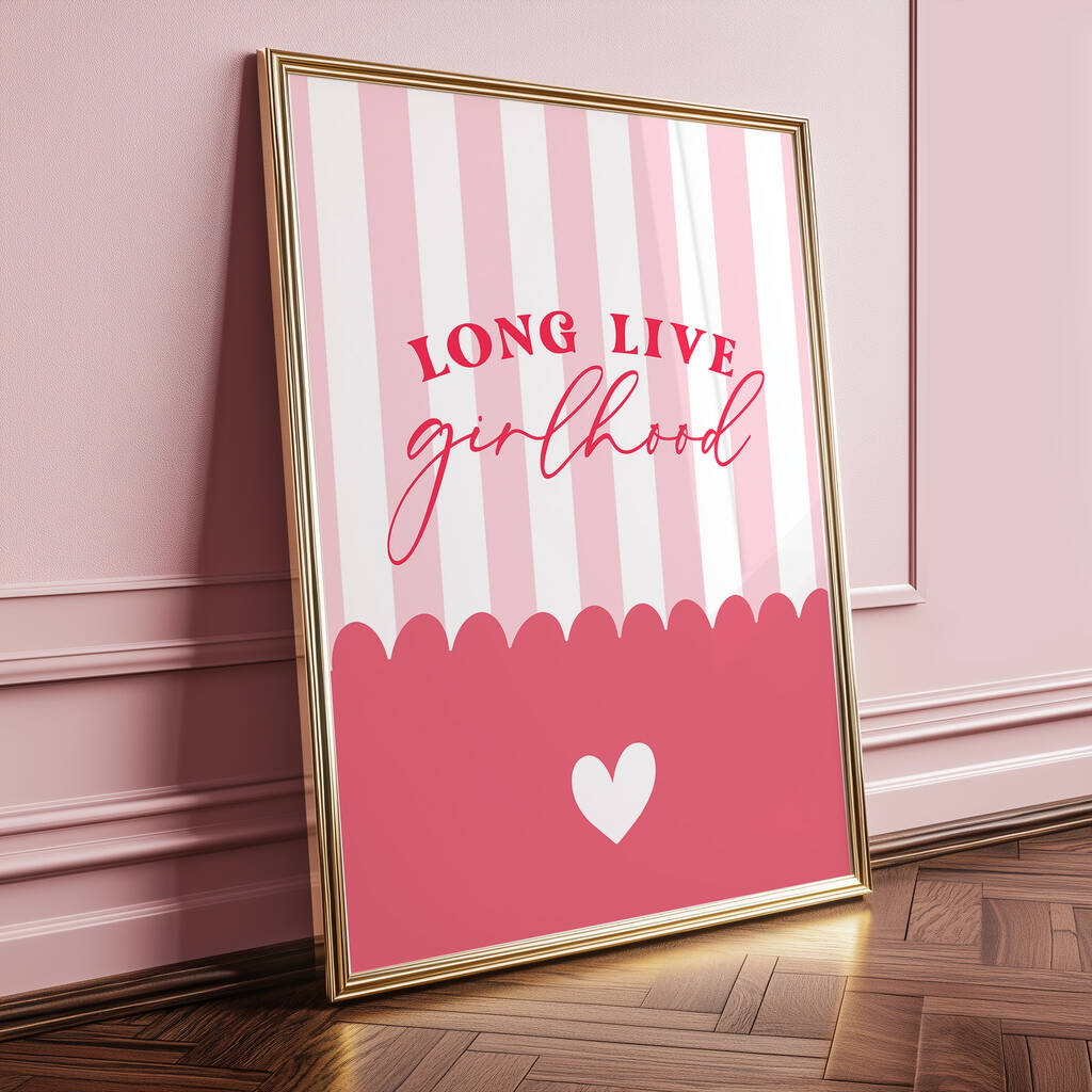 Celebrate her fearless spirit with this pink ‘Long Live Girlhood’ print — a charming nursery artwork that inspires joy, confidence, and playful creativity.