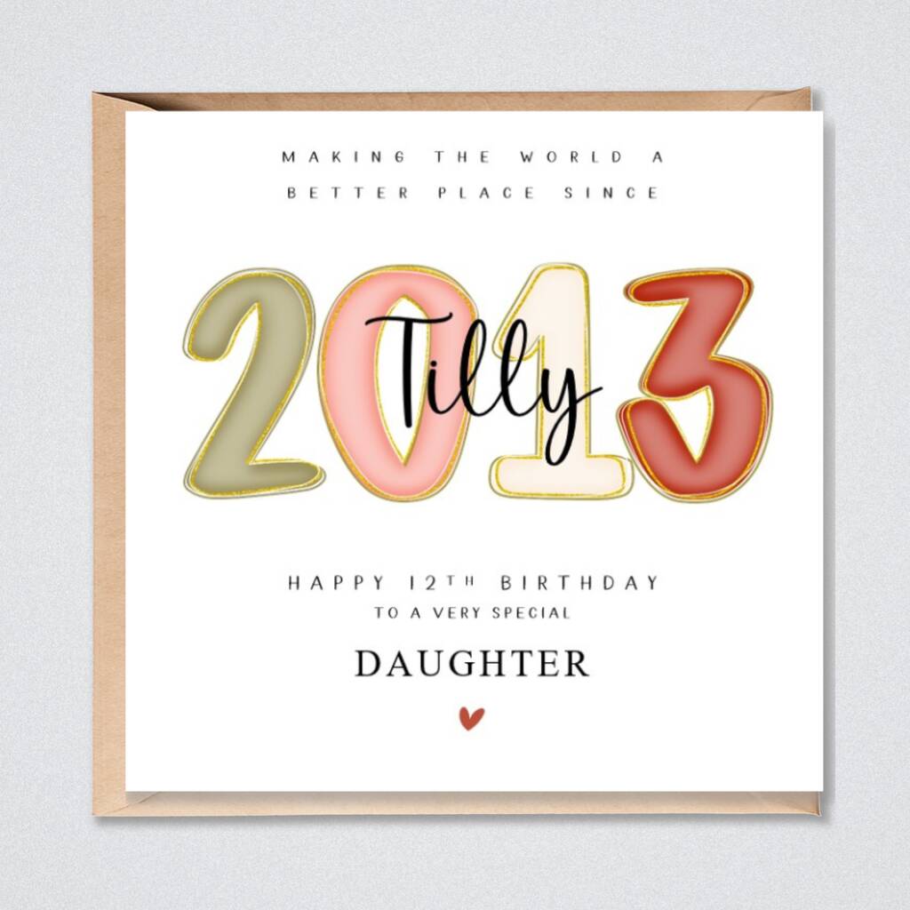 Personalised 12th Birthday Card 2013 Sister Daughter Niece