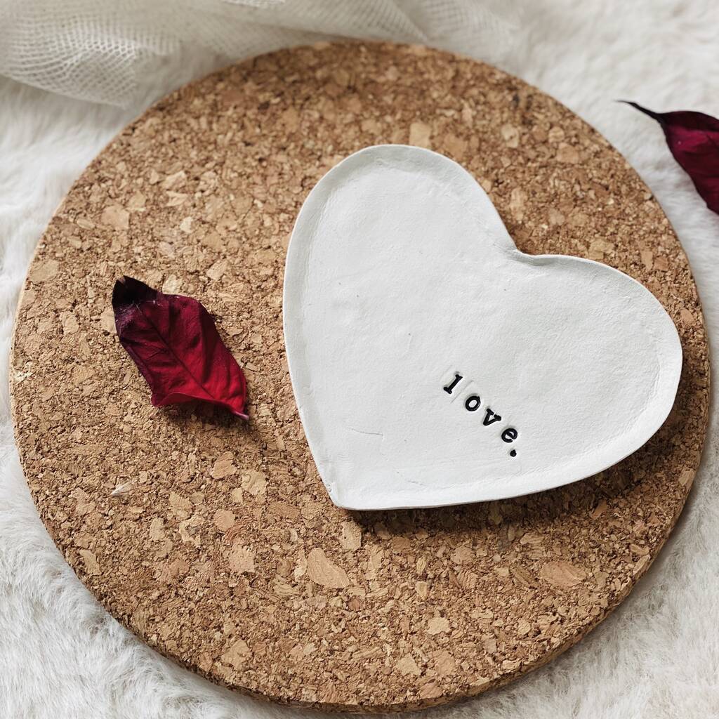 Made lovingly by hand using clay. Please bear in mind that these trinket dishes are delicate and should be handled with care. Due to our personalisation process, we only stamp on the front of the dish. All of our dishes are wrapped in tissue paper then placed in a cardboard box to ensure they reach your door as perfect as when they left ours.
