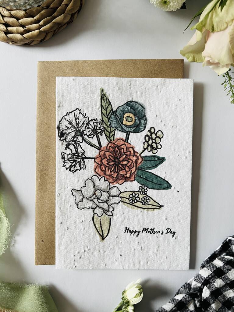 A simple yet beautiful way to wish your Mum love this Mother's Day with our plantable seeded card. A 2 in 1 gift being a card to wish her Happy Mother's Day on seeded paper so she can grow her own flowers too!