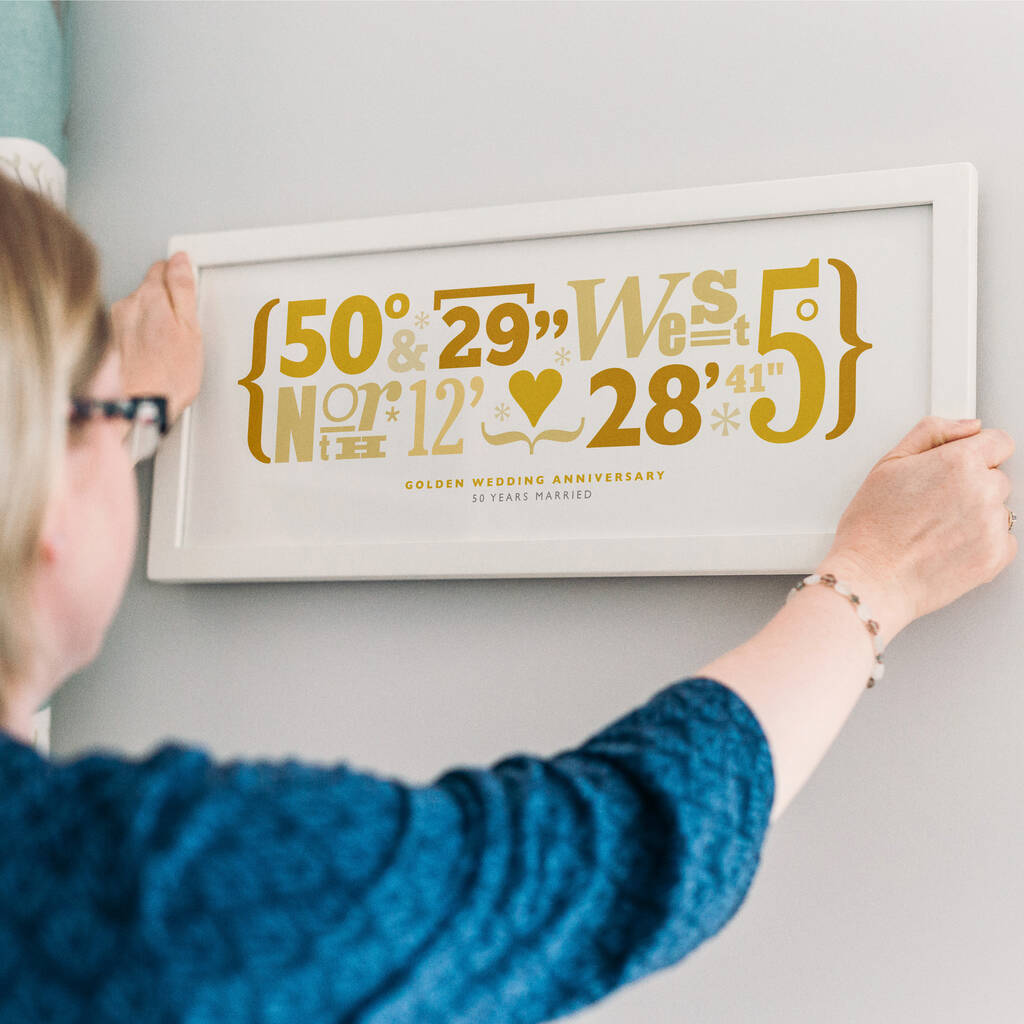 Personalised Golden Wedding Anniversary Coordinates Print – 50th Wedding Anniversary Gift