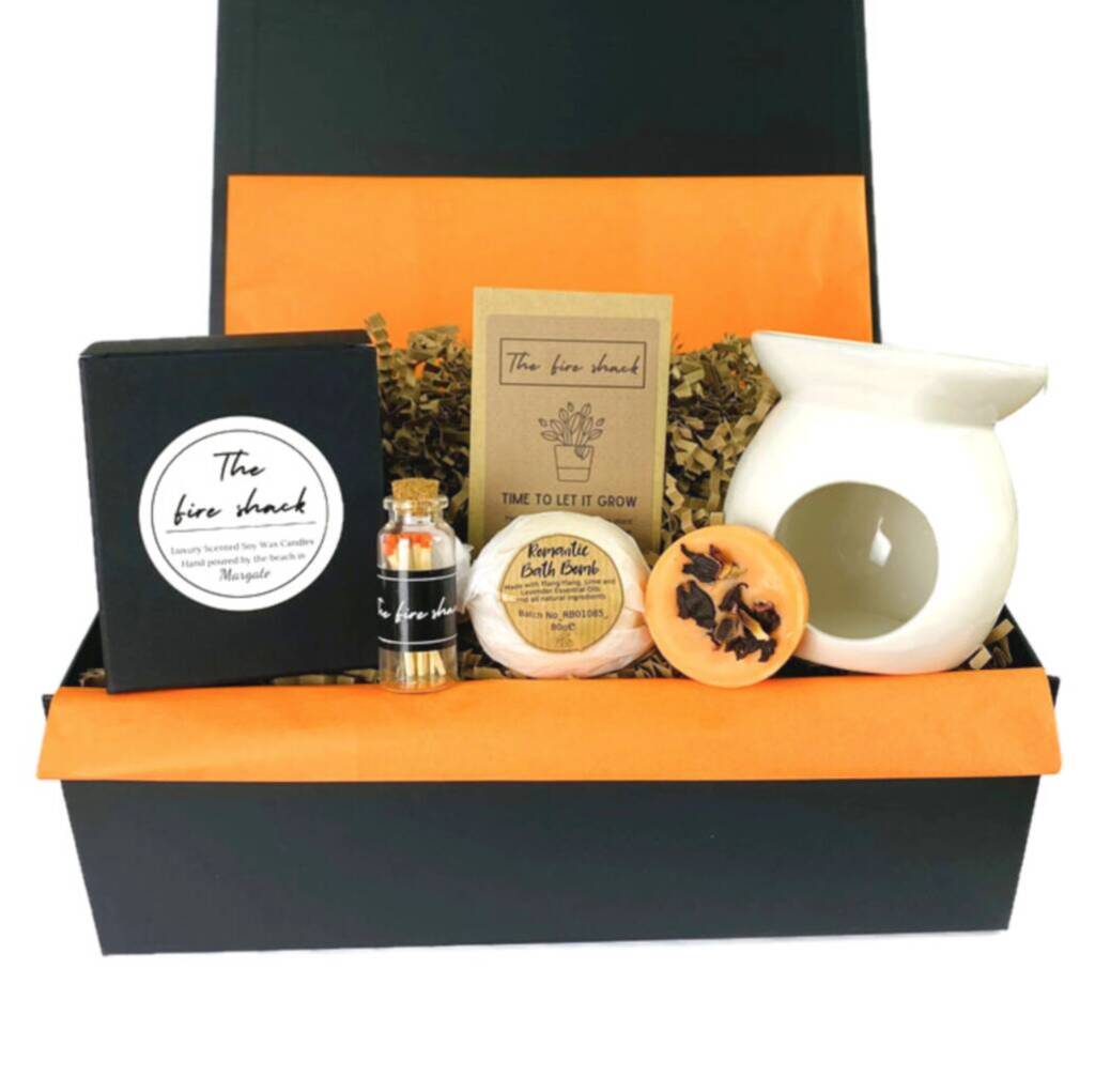 You can also upgrade your order to a hamper option, which includes a 100% natural 80g bath bomb, a wax burner, a sanctuary scented wax melt, as well as our standard basil seeds and branded glass bottle of matches all packaged in a beautiful black gift box lined with tissue paper and natural shredded kraft paper.