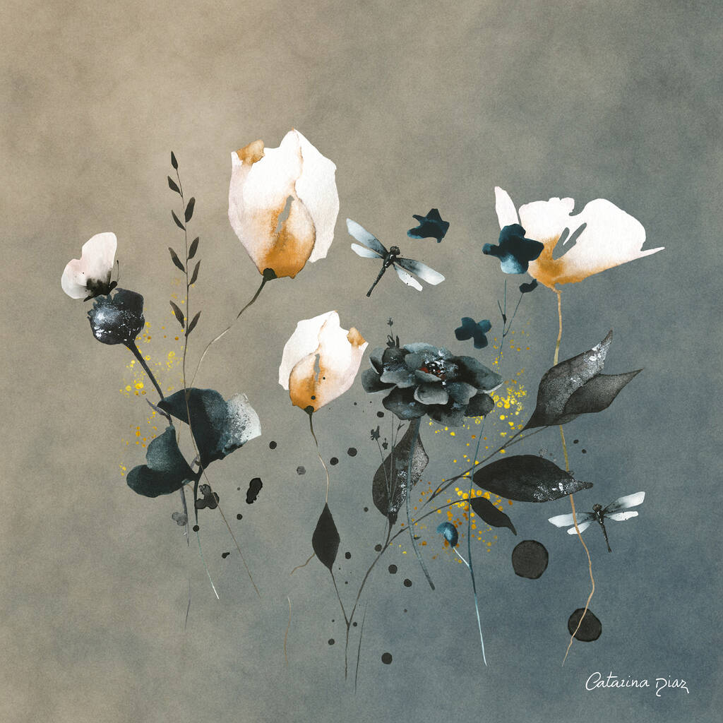 A luminous echo of dusk — where wings, petals, and gold dust rise through mist and moonlight. Drift of Light captures the hush between day and dream in Catarina Diaz’s signature minimalist style.