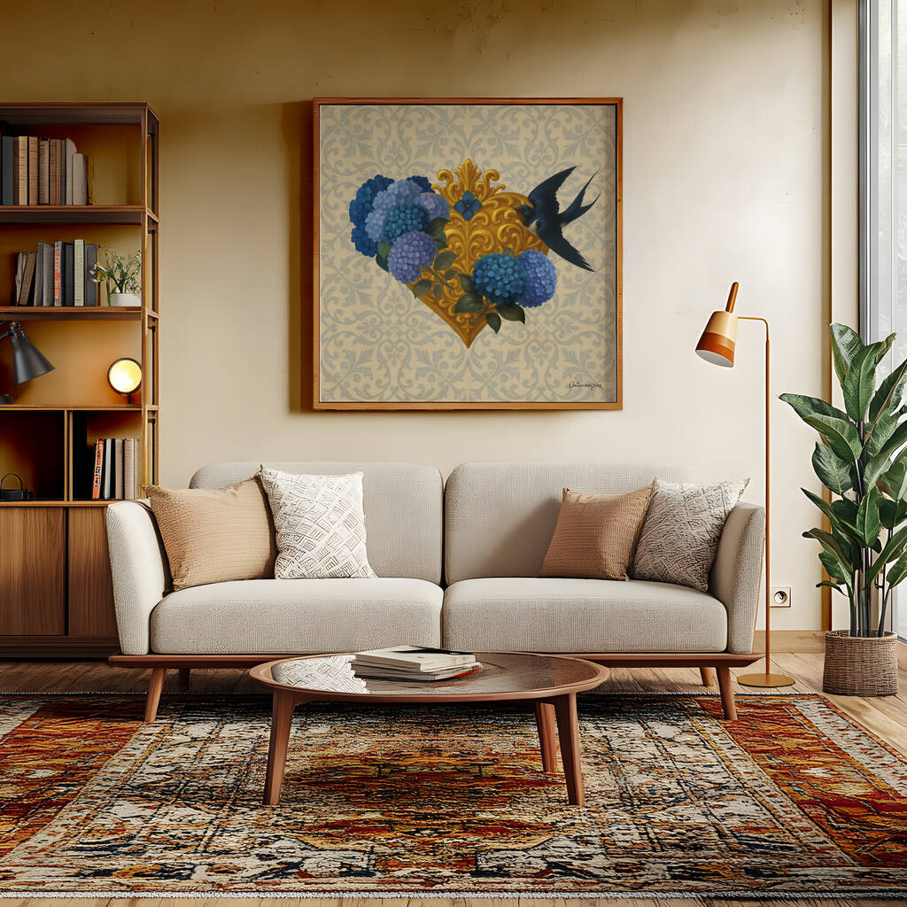 Inspired by the Azores’ hydrangeas and Portugal’s golden filigree, this heritage print celebrates craftsmanship, legacy, and coastal beauty—perfect for meaningful gifts or timeless interiors.