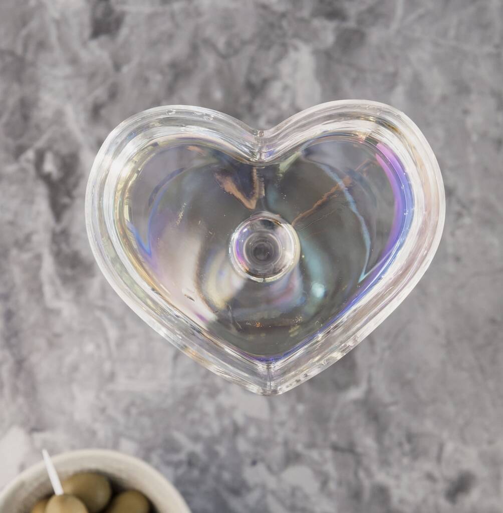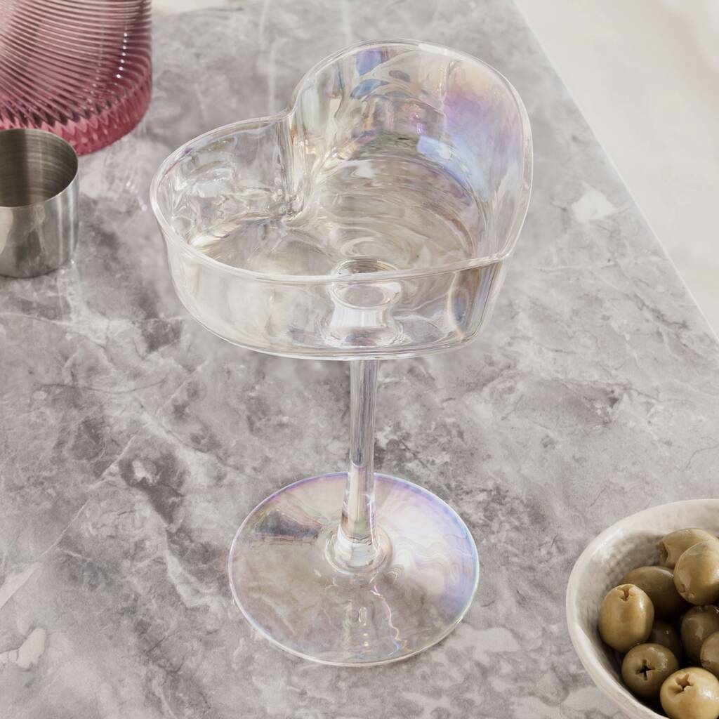 Set Of Two Glass Heart Shaped Champagne Coupes