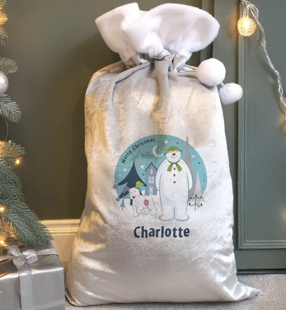Personalised The Snowman And The Snowdog Pom Pom Sack
