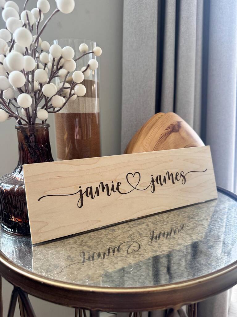 Personalised Engraved Wooden Sign – Slim Plywood ‘Home Sweet Home’ Plaque With Names
