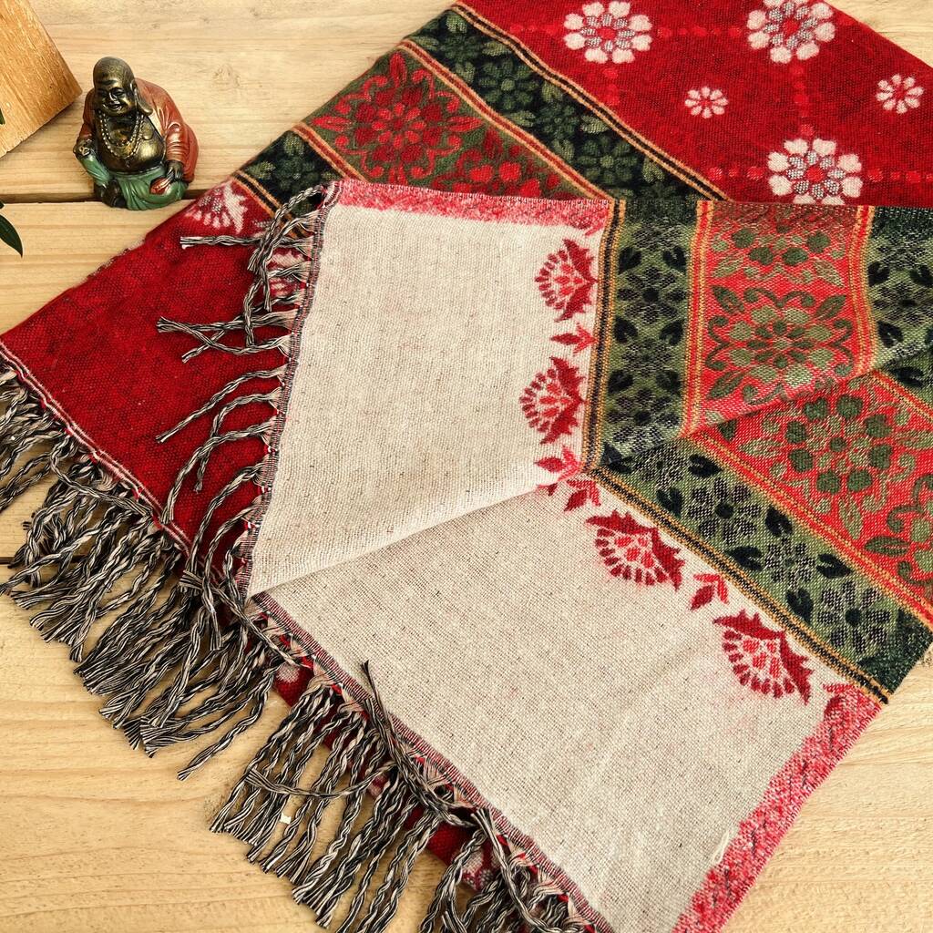 Handwoven Red Boho Recycled Cotton Throw Blanket