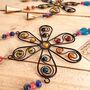 The black finish gives this hanging decoration a rustic bohemian style. This flower wind chime is fair trade & handmade in India from recycled iron each is wonderfully unique & environmentally friendly.