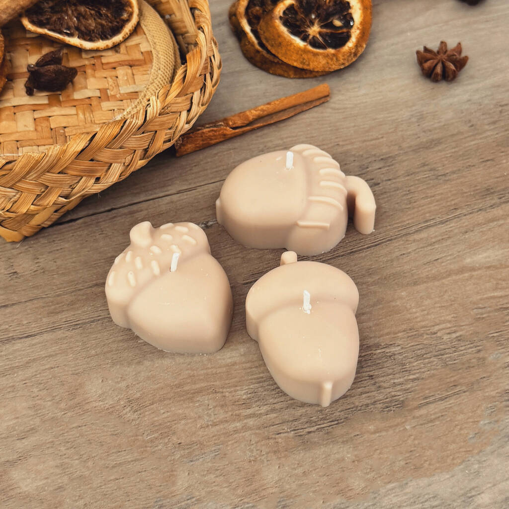 Our set of 3 beige acorn shaped tea lights are the perfect Autumn candles and looks great as part of your Autumn decor.
