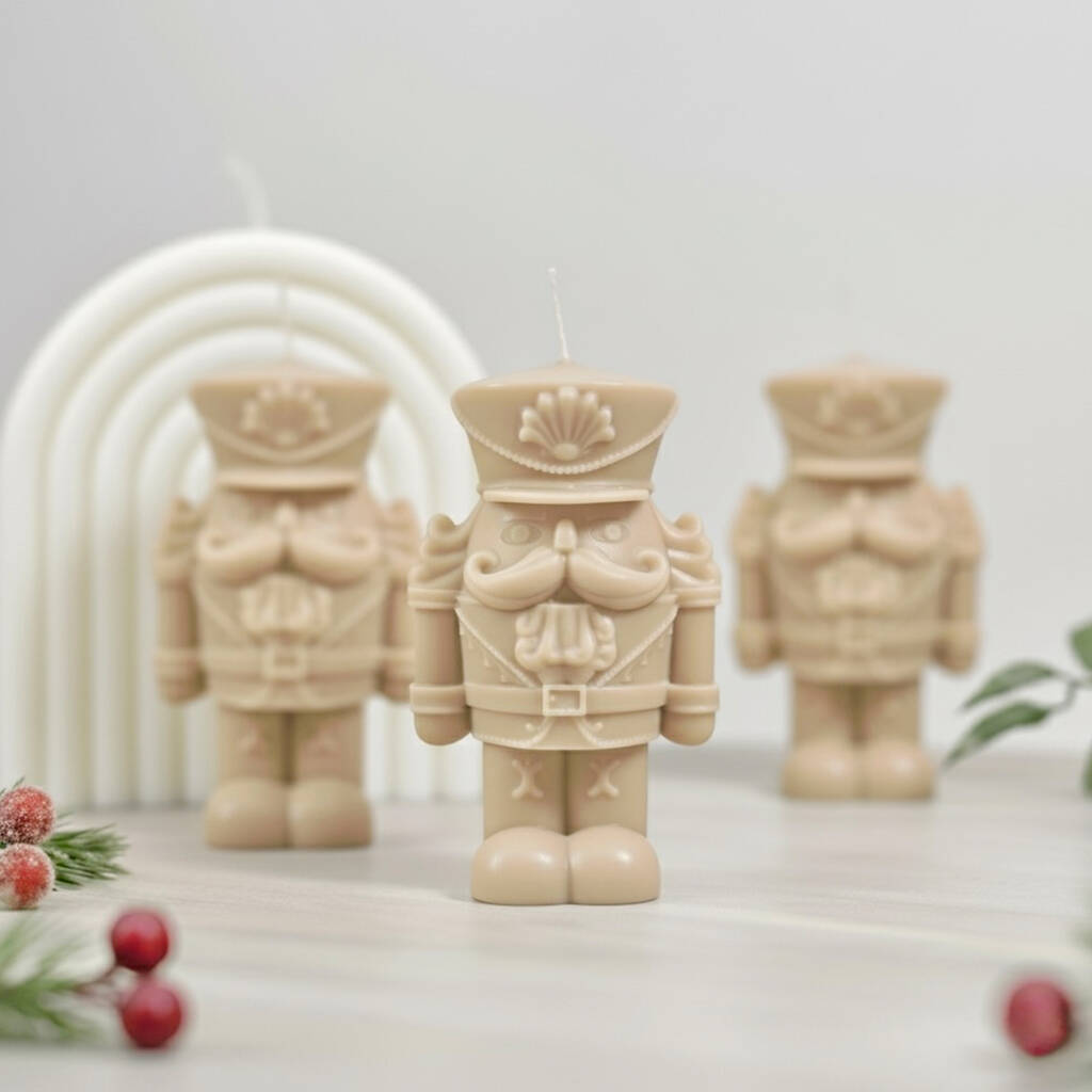 Our beige traditional nuctacker candle is a perfect Christmas decoration candle, adding a festive touch to any room and makes a great Christmas gift.